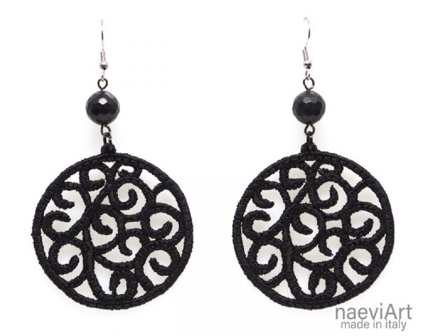 Materiale: PIZZO (Filo in viscosa), perni in acciaio e cristalli.
